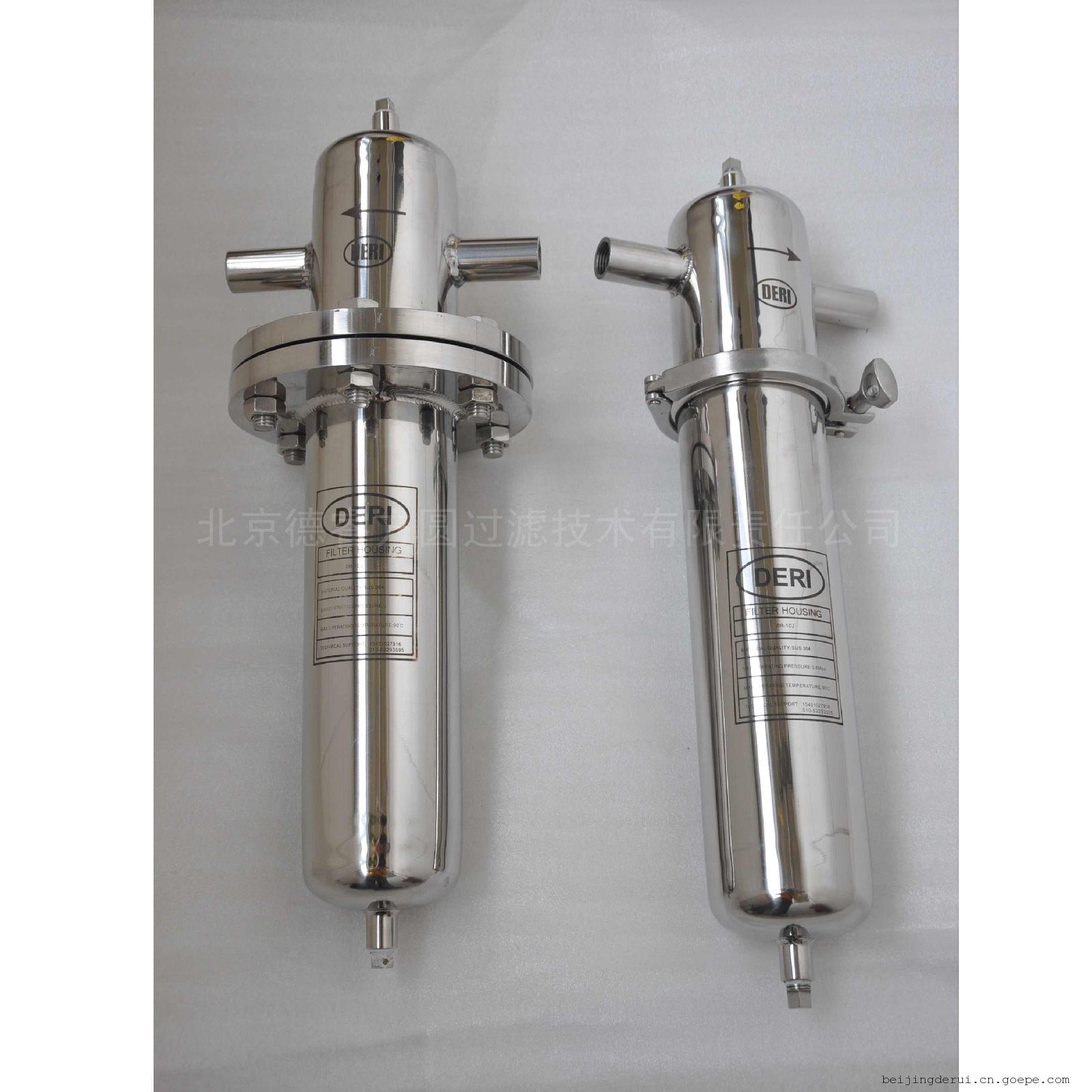 1)DERI除菌过滤器按德国同类产品标准设计,精制304或316不锈钢卫生级壳体,内外经高精度机械抛光,快装或法兰式结构,标准设计工作压力1.0MPa。可适用于空气和各种液体的除菌过滤。